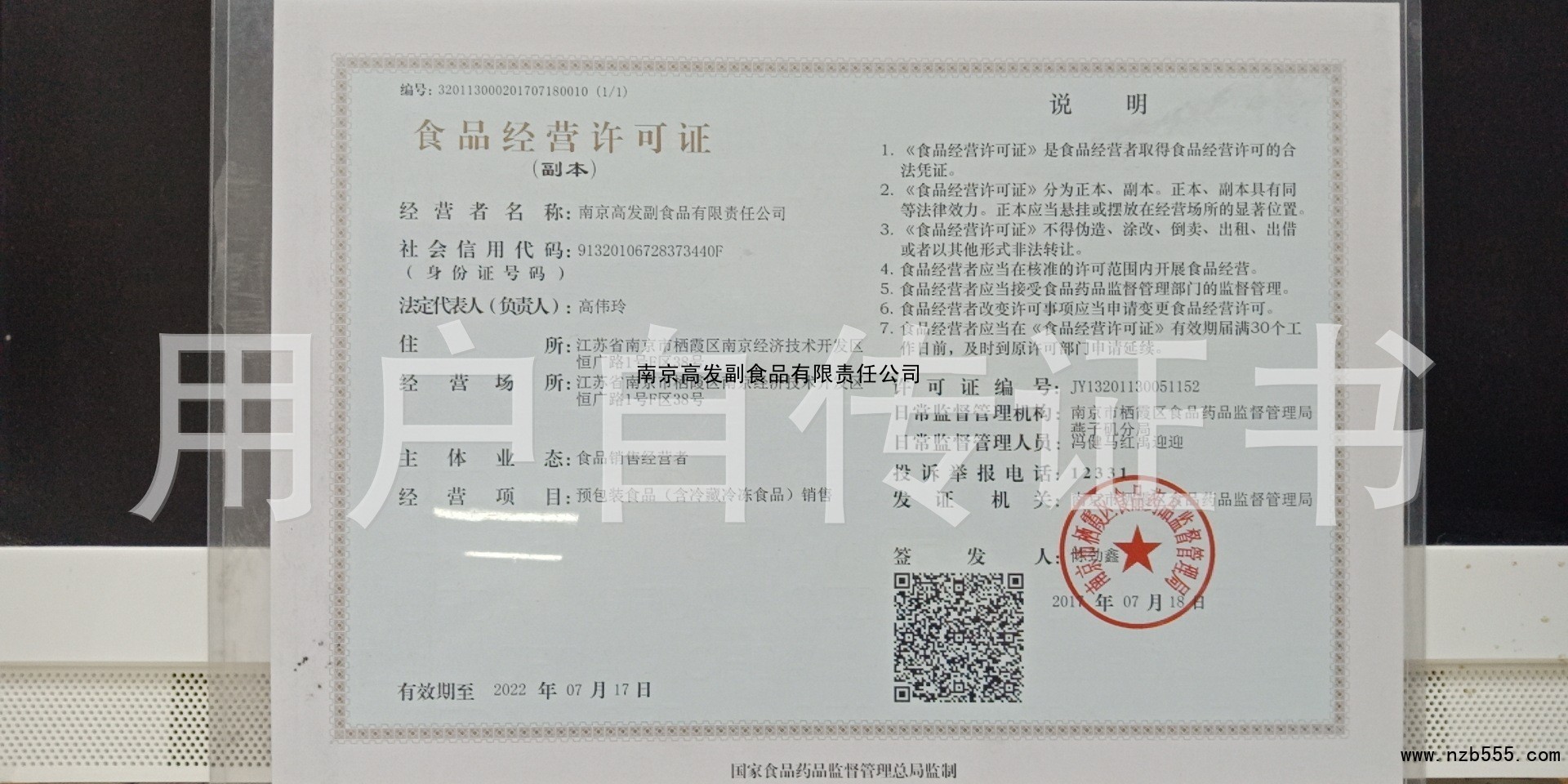 榮譽(yù)資質(zhì) 南京高發(fā)副食品有限責(zé)任公司