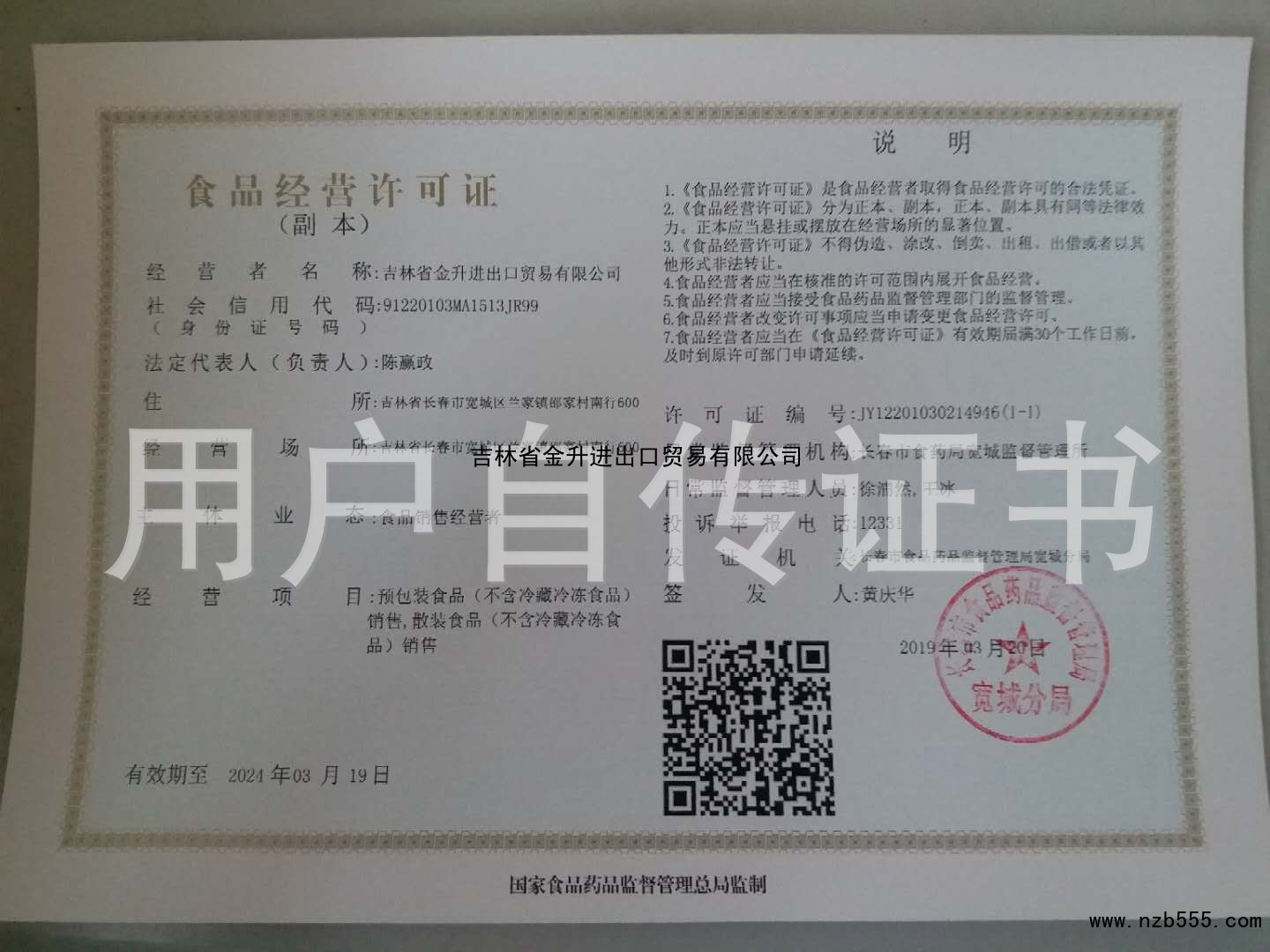 食品流通許可證(除乳制品、嬰幼兒配方乳粉、酒之外的流通許可證)