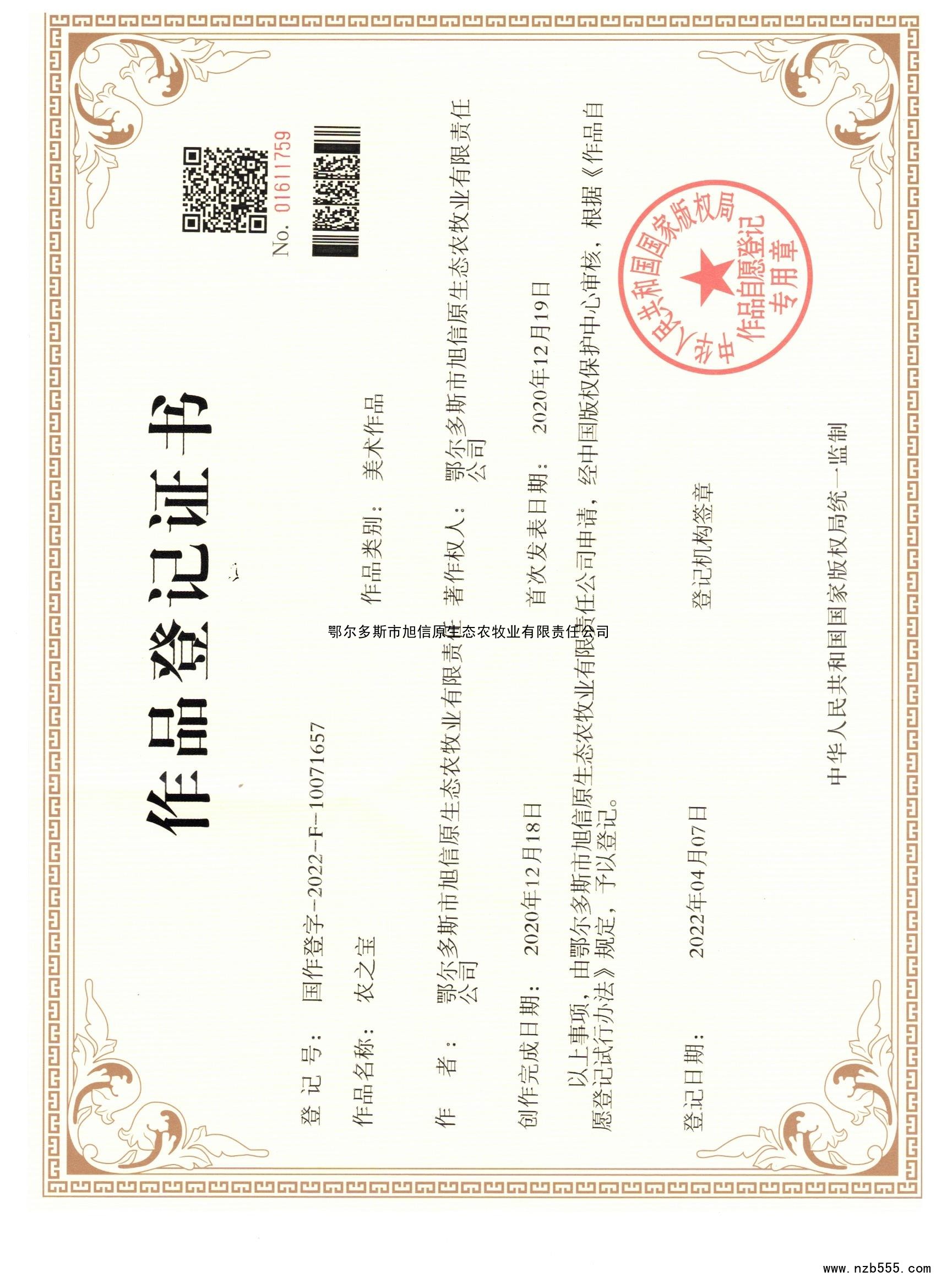 作品登記證書 農之寶