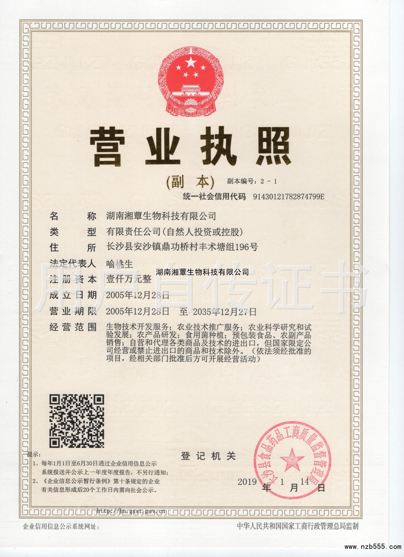 | 發(fā)證機(jī)構(gòu): | 長沙縣食品藥品工商質(zhì)量監(jiān)督管理局 | 發(fā)證時(shí)間 : | 2019-01-14 |