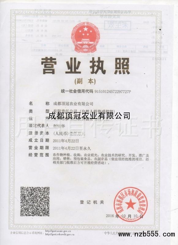 | 發(fā)證機(jī)構(gòu): | 成都市新都區(qū)市場和質(zhì)量監(jiān)督管理局 | 發(fā)證時間 : | 2016-10-10 |