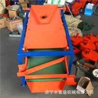該精選篩為二層篩網(wǎng),先經過進料口處風機抽風,直接抽走重量輕的雜葉或麥秸稈,上層篩的初次篩分再把大雜清理過,好的糧食(種子)直接落到下層篩網(wǎng)上,下層篩網(wǎng)會把糧食(種子)中的小雜.小石子.有缺陷的糧食(種子)直接漏掉,完好的糧食(種子)會從出料口篩分出來。該小型清糧機解決了揚場機的功能單一,不能有效去除石子.土塊的缺陷,更能為清理.凈選糧食(種子)帶來滿意的效果。該機有占地小,移動方便,便以維修,除塵除雜效率明顯,能耗低,使用簡便等優(yōu)點。