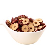 本品為去核烘干紅棗片,是由新疆若羌棗經過清洗、篩選、低溫烘焙、切片等多種工序來完成,