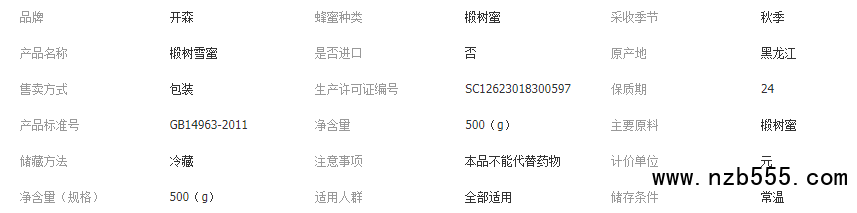 開森蜂業(yè) 東北特產(chǎn) 椴樹雪蜜 椴樹蜜蜂蜜 結晶蜜 自產(chǎn)原蜜500g