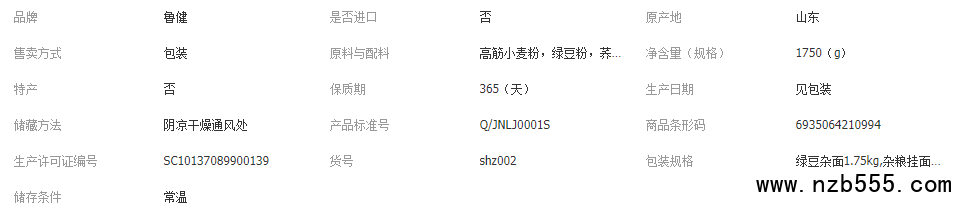 此款面條為實惠裝,有綠豆雜面,麥芯掛面,雞蛋掛面,小米掛面,雜糧掛面5種口味,重量每袋可裝1.75kg.