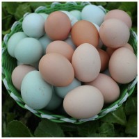 蛋品產自鄂北山地圣龍山周邊,由農產每天一次趕集時賣到本公司的收購點,多的一戶十斤、八斤,少的一斤、兩斤,蛋質 新鮮。全鎮一萬二千戶居民約六千戶養有土雞,約有二千戶有余蛋出售至我公司收購點,旺季(清明前后)日收蛋亮三千余斤,近四萬枚產品顏色雜亂不一:有青殼、麻殼、沙殼、白殼、紅殼等。蛋個大小不一,每斤約十一至十二個,色鮮黃、味濃。