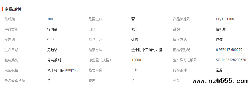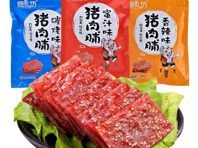 信禮坊零食食品 靖江特產 蜜汁/香辣/碳烤三味豬肉脯/200g*60包
