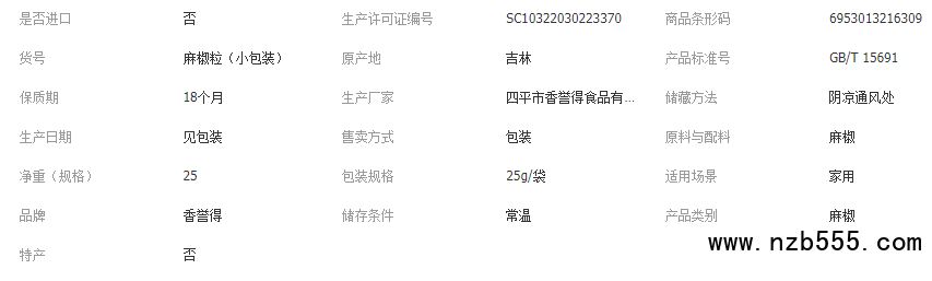 香譽得廠家供應麻椒粒25g/袋小包裝 食品燒烤烤肉火鍋調味料批發