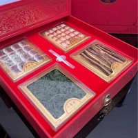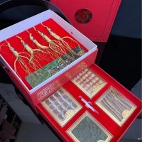 內(nèi)含:10-12年林下參5顆,鹿茸片,鹿鞭片,人參花,靈芝片各一盒