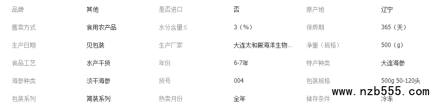 大連特產淡干海參大連