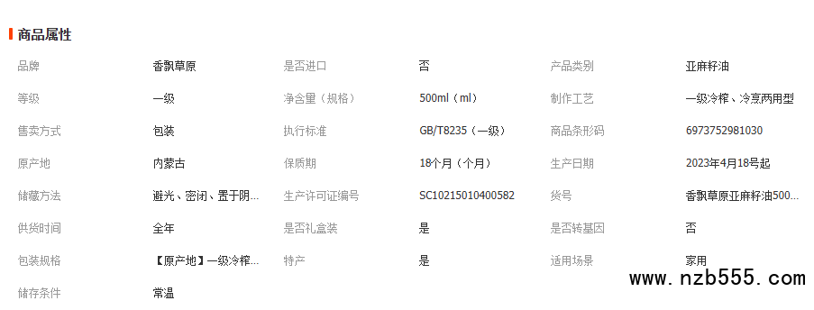 香飄草原亞麻籽油瓶裝一級冷榨內蒙古原產地植物油月子油禮盒