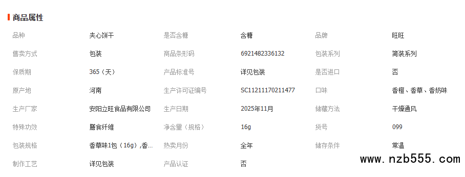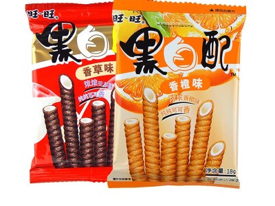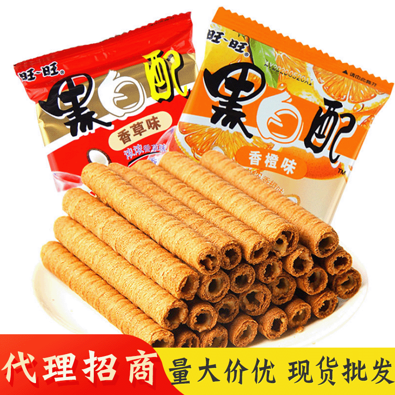 旺旺黑白配16g袋裝夾心餅干網紅休閑零食小吃香橙香草味整箱批發